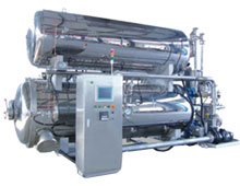 用高溫高壓的蒸汽和熱水作多種食品的高溫快速殺菌處理,食品在連續(xù)緩慢回轉(zhuǎn),使熱量傳遞更迅速均勻,大大縮短整個殺菌過程的時間,從而達到高溫短時殺菌處理,同時可避免食品周圍產(chǎn)生過熱的現(xiàn)象.